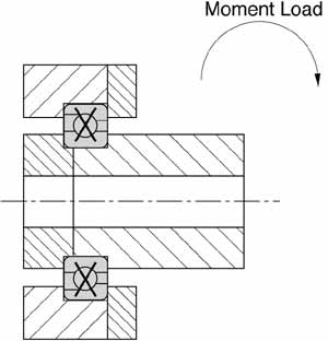 The X-Type, or 4-point contact, ball bearing is ideal for moment loading. X-Type bearings are designed with gothic arch raceways creating 4 contact points between the balls and the raceways. This design is excellent for moment loading and reversing axial loading. The X-Type bearing can be used for other light loading conditions, but is not recommended in place of the C- or A-Type bearing for pure radial loads.